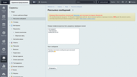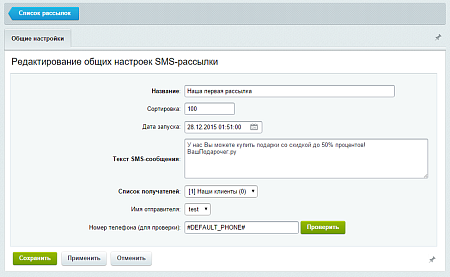 С помощью модуля вы сможете оперативно организовать SMS-рассылку с акциями и спецпредложениями.