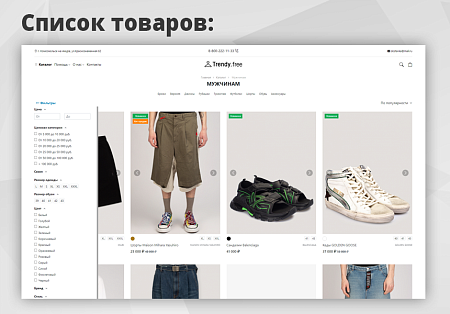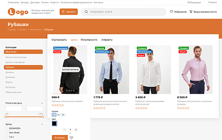 Чтобы упростить клиенту выбор одежды, в шаблоне должна быть сортировка товаров по свойствам - цене, размеру, материалу изготовления, бренду и т.д.
