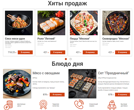 Интернет-магазин доставки еды и блюд на готовом решении