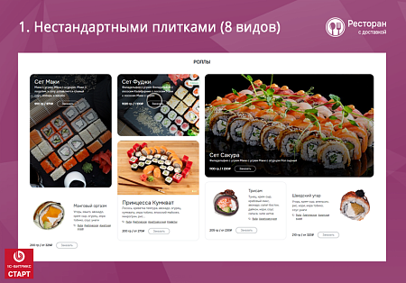 Мы предлагаем готовые интернет-магазины продуктов и магазины по доставке готовых блюд - бургеров, суши и роллов, пиццы.